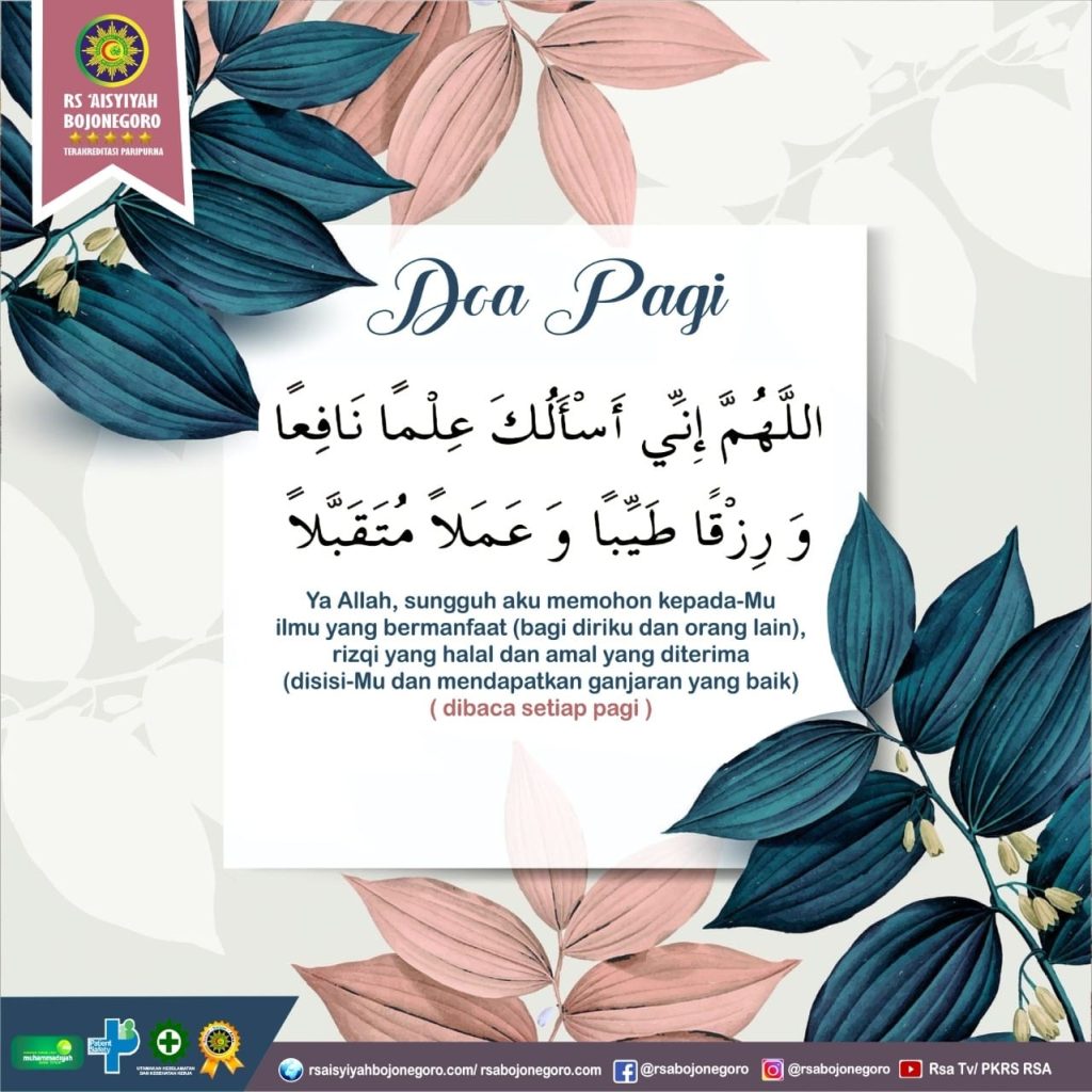 اَللَّهُمَّ إِنِّيْ أَسْأَلُكَ عِلْمًا نَافِعًا، وَرِزْقًا طَيِّبًا، وَعَمَلاً مُتَقَبَّلاً “Ya Allah, sesungguhnya aku memohon kepadaMu ilmu yang bermanfaat, rezki yang baik dan amalan yang diterima.”…